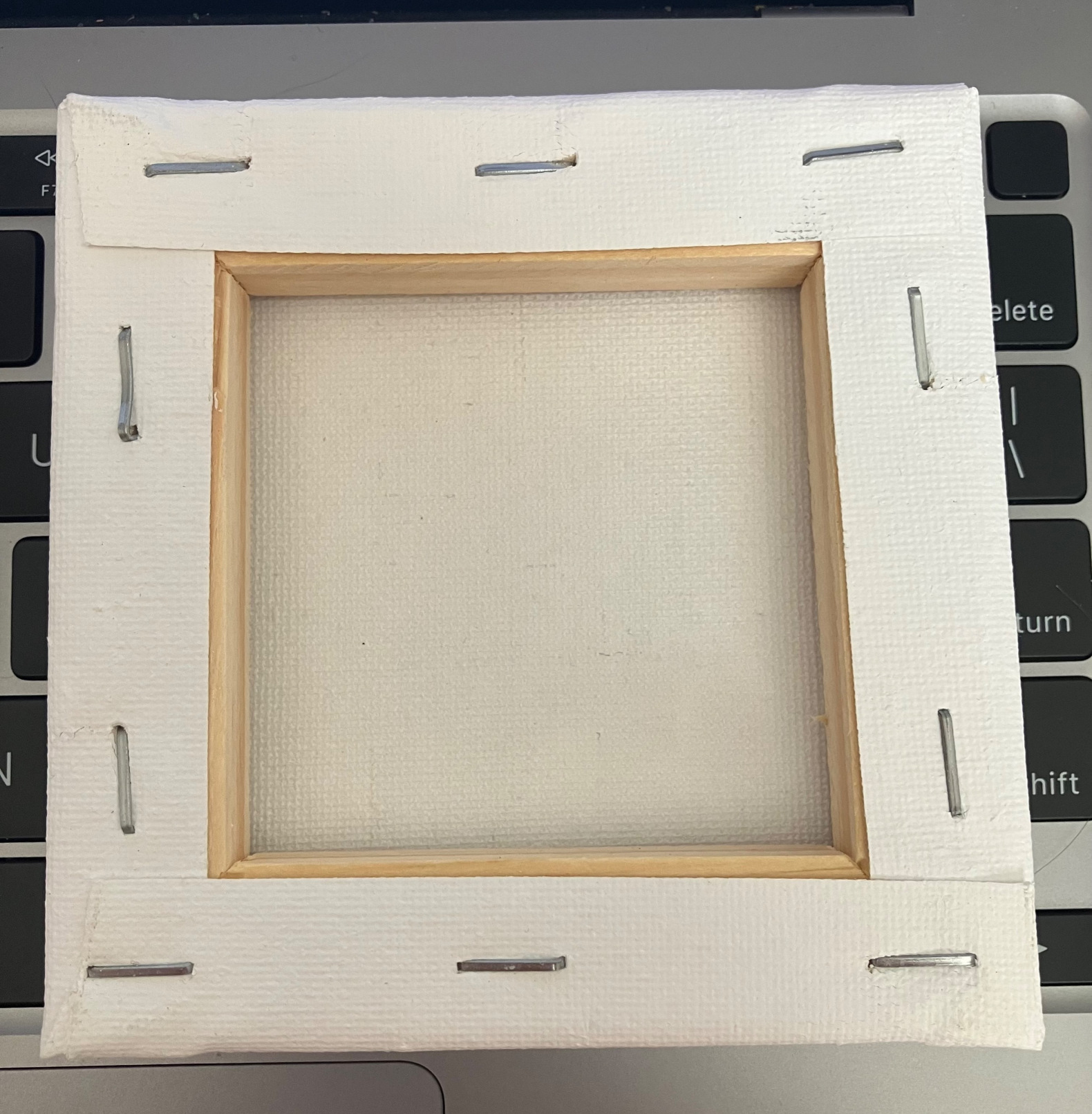 This is the back of a mini canvas, you may see how the edges were folded and stapled to the back.