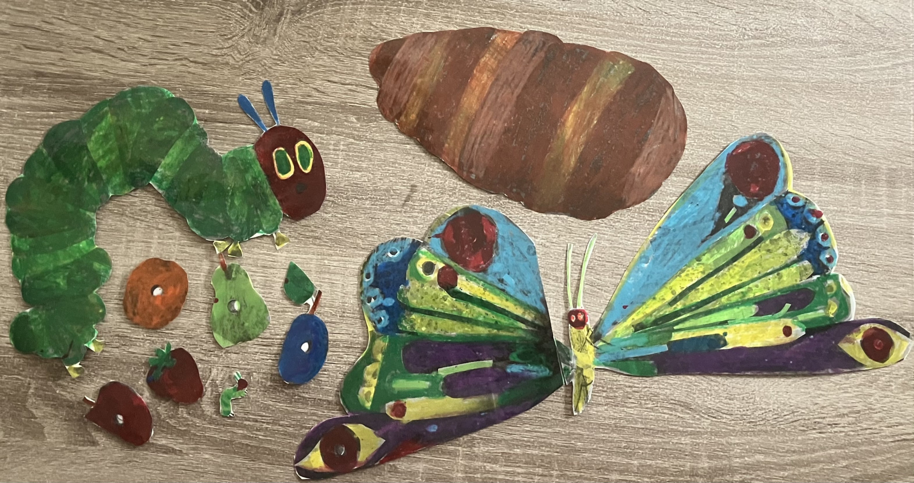 Not only can you do this sort of activity for my books, but there are so many other ideas and fun things to do with other books around the web. There are even people who actually make book characters into felt rather than printing them out. You can even do it yourself if you're crafty. You can do this for any book really. Even if you aren’t crafty, you can scan pages of a children’s book, print them out, and do the same thing you’d do with “The AlphaBezzies” activity, cut them out, laminate (if you can) and glue felt to the back. While in vocational school, we did this. It’s how I learned about flannel boards/felt boards originally. I had some pages of “The Very Hungry Caterpillar” by Eric Carle, scanned and then colored them in with oil pastels because they came out in black and white. Then they were cut out, laminated, and of course, felt glued to the back.